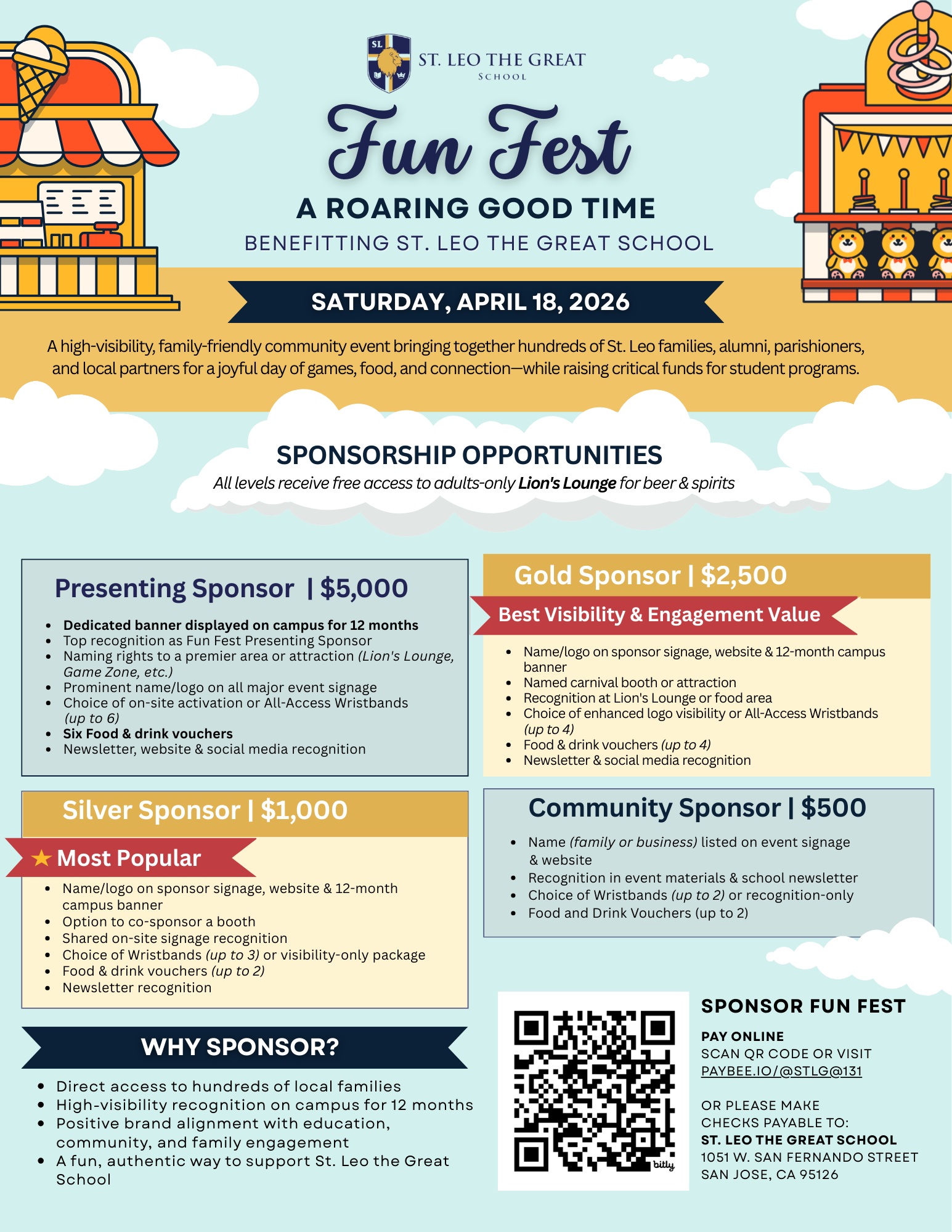 Additional questions? Check out our: Fun Fest FAQs or email funfest@stleosj.org.